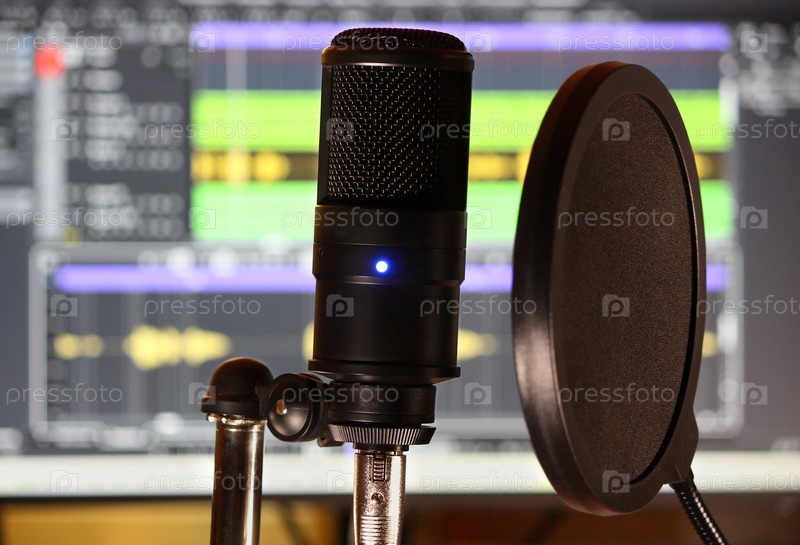 Микрофон конденсатора на фоне программы записи