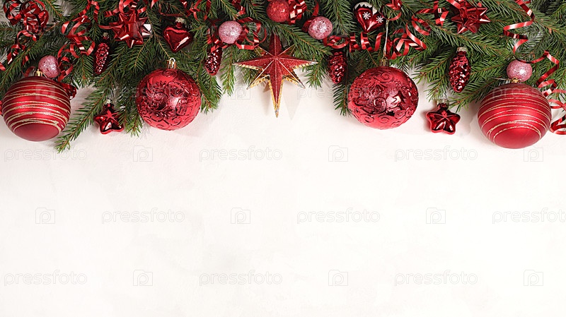 Праздничная зимняя поздравительная открытка и баннер на экране, красивый рождественский и новогодний фон с огнями, ювелирными изделиями, игрушками и живыми ветвями пихты, дизайн продукта для праздничной рекламы,