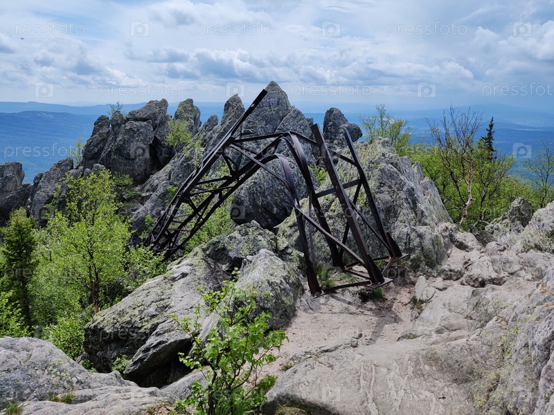 Разрушенный мачта метеорологической станции в парке Таганай