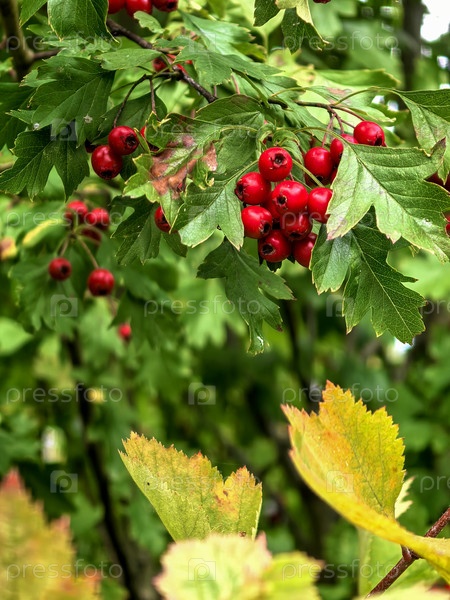 Кровавые красные ягоды гофтора (Crataegus sanguinea)