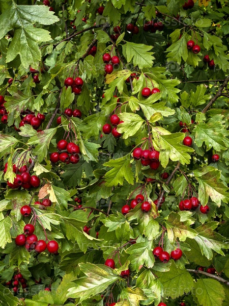 Кровавые красные ягоды гофтора (Crataegus sanguinea)