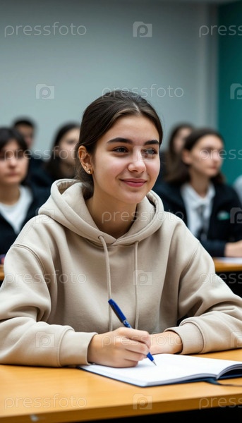 Девушка-студент на лекции среди других студентов