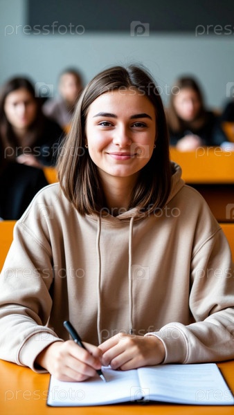 Студент на лекции записывает информацию в блокнот
