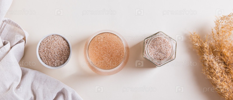Псилла в стакане воды, в миске в банке на столе над веб-баннером