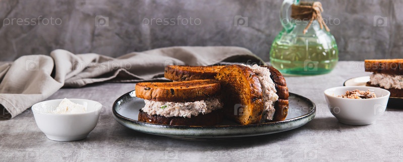 Сэндвичи на жареном хлебе с салатом из тунца и сливочным сыром на баннере