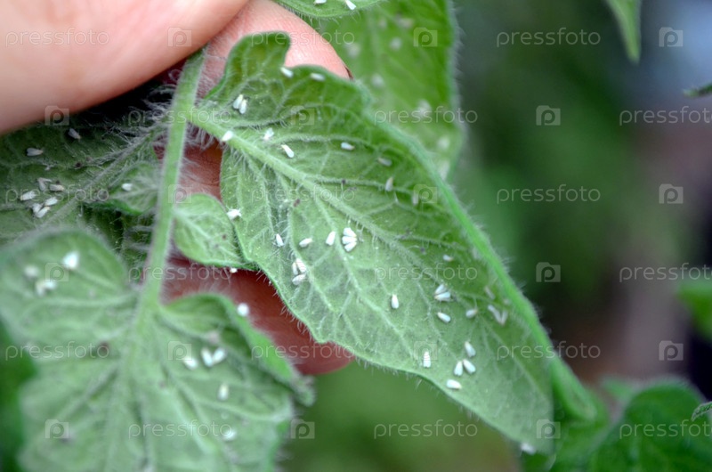 Белая муха на листе томата