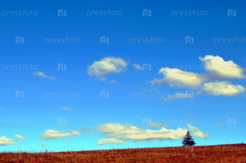 Небесный пейзаж и одинокая ель