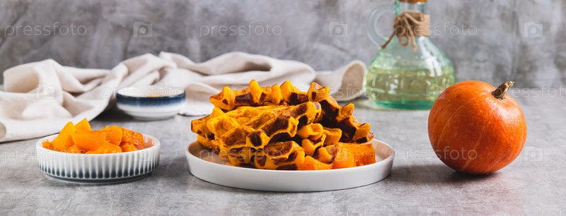 Сладкие выпеченные вафли из тыквы на тарелке на столе веб-баннер