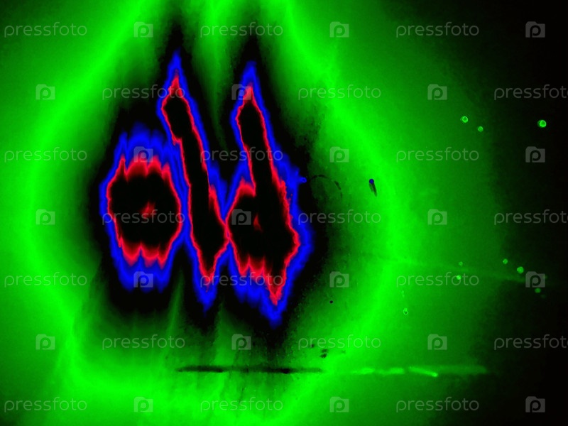 На черном фоне английское слово написано вручную цветными неоновыми линиями.Черные буквы светятся красно-синим по краям, а вокруг них зеленый ореол