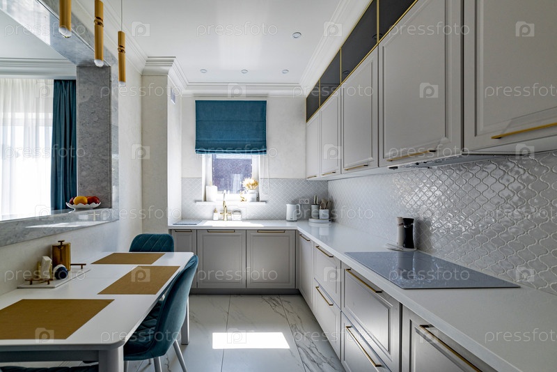 Интерьер современной боковой комнаты с кухонным комплектом