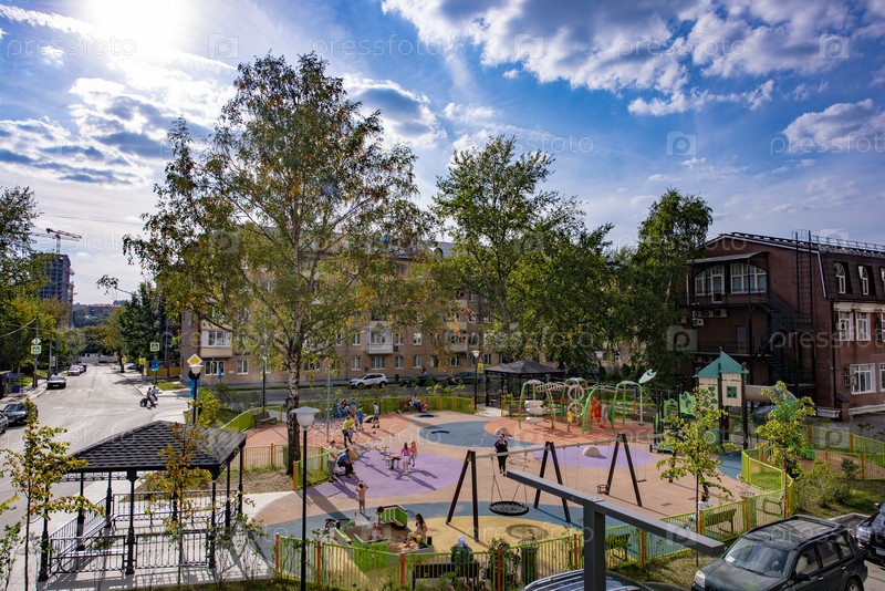 Двор современного жилого комплекса в Москве.Спортивная площадка