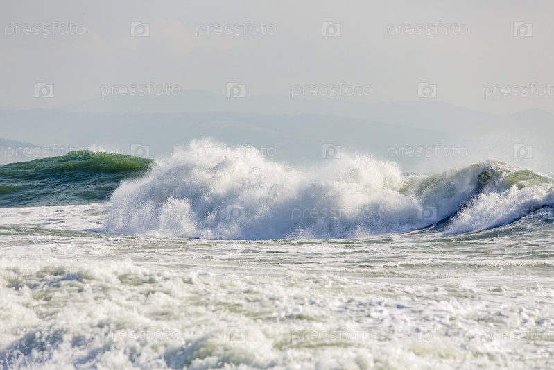Шторм в Черном море. большие штормовые волны на Северном Кавказе. пена и спрей