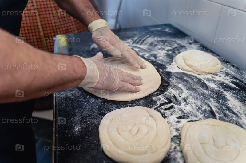 Мужчина делает тесто для пиццы на столе