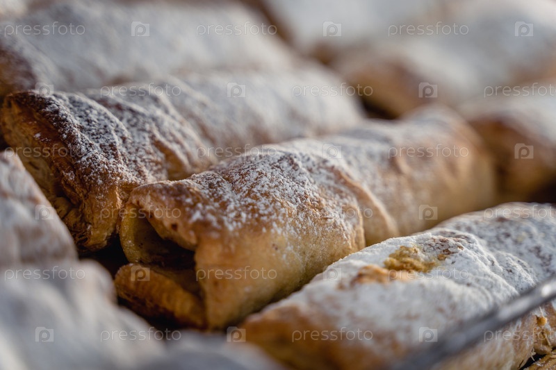 Ряд выпечки с сахаром в порошке на вершине