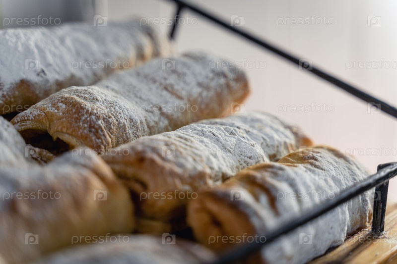 Ряд выпечки с сахаром в порошке на вершине