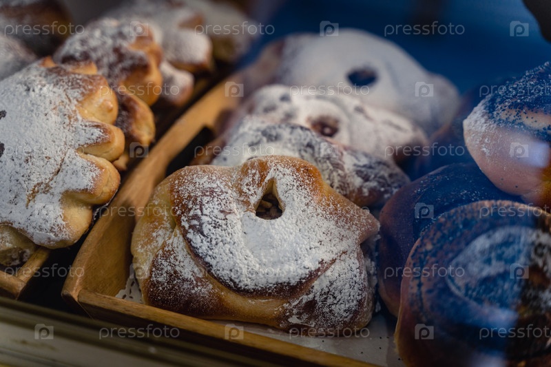 Поднос с порошкообразными пончиками из черники