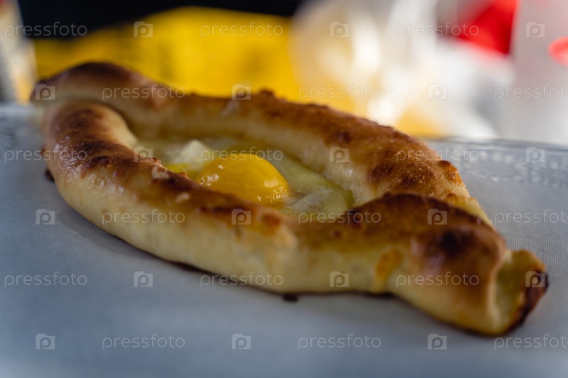 Грузинский аджарийский хачапури лежит на стойке. грубый и сочный
