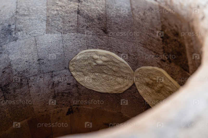 Узбекские торты выпекают в тандуре, они вешаются на стену тандары и становятся коричневыми