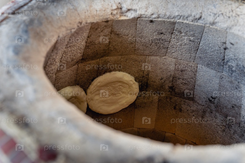 Узбекские торты выпекают в тандуре, они вешаются на стену тандары и становятся коричневыми
