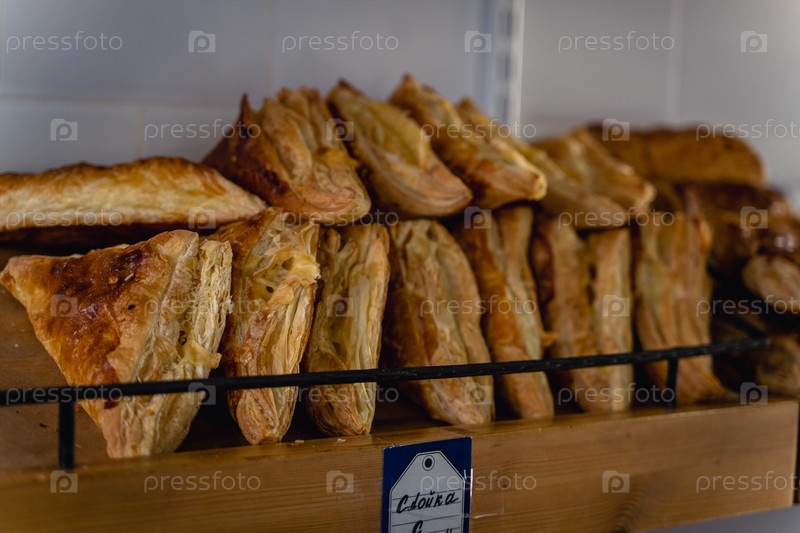 Различные свежие и вкусные торты и булочки находятся на стойке