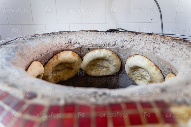 Узбекские лепестки свистят на сеновой тандуре и готовятся. Внизу горит огонь. Торты красные и сочные, с аппетитной корой