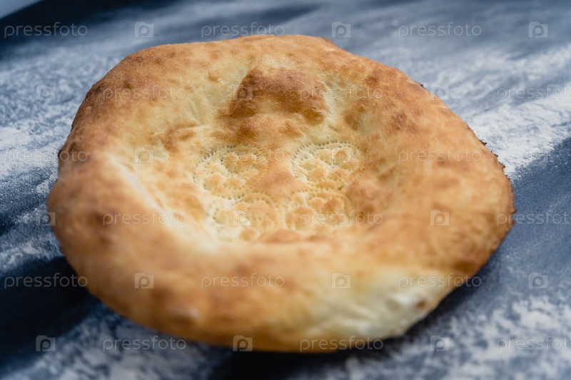 Свежевыпеченные аппетиты узбекские пироги лежат на столе, посыпаемые мукой