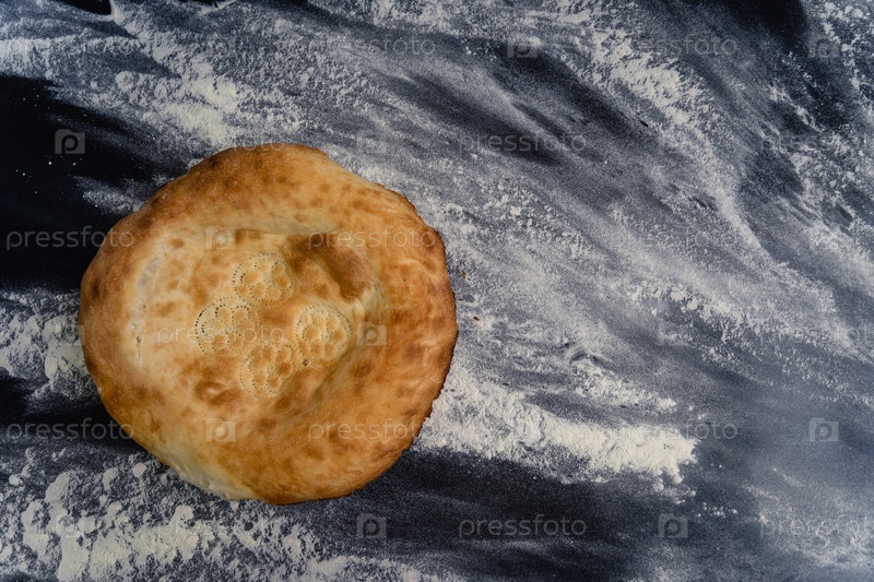 Свежевыпеченные аппетиты узбекские пироги лежат на столе, посыпаемые мукой