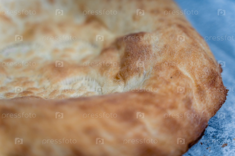 Свежевыпеченные аппетиты узбекские пироги лежат на столе, посыпаемые мукой