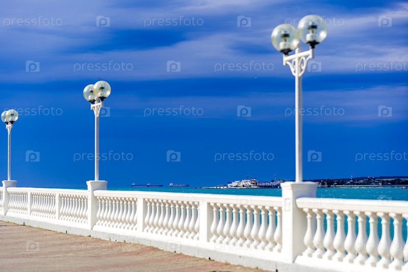 Набережная курорта Геленджик Белая балюстрада проходит вдоль набережной Итучинское море на заднем плане