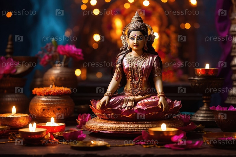 Индийская богиня религии Лакшми на традиционном индуистском фестивале Дивали