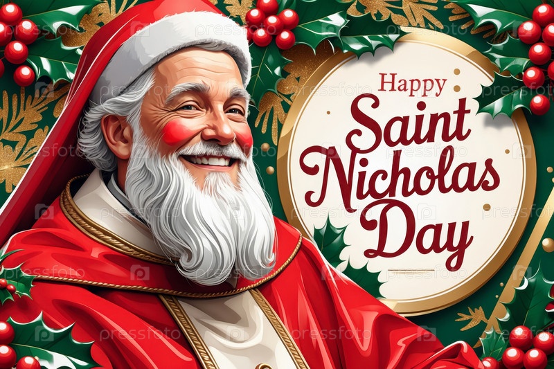 Открытка с праздничным баннером на православный праздник в честь Дня святого Николая AI Generative
