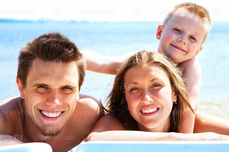 Семья отдыхает на море