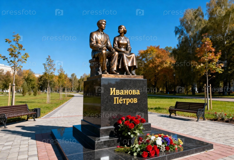 Памятник мужчине и женщине в городском парке