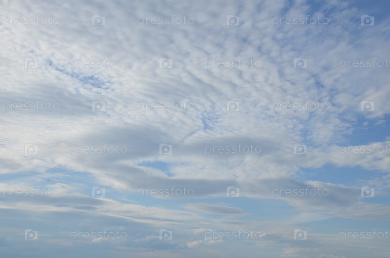 Красивые белые облака: циррусы, кумулы, слоистые против голубого летнего неба в течение дня