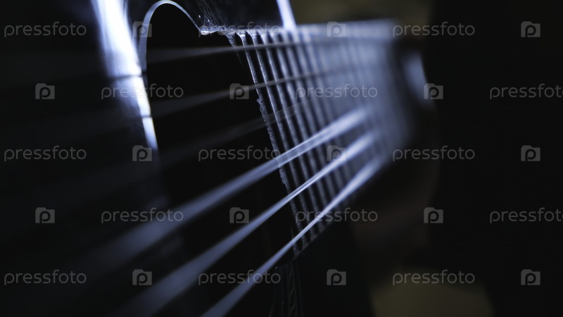 Руки мужчины играют на черной акустической гитаре.Концепция уроков музыки