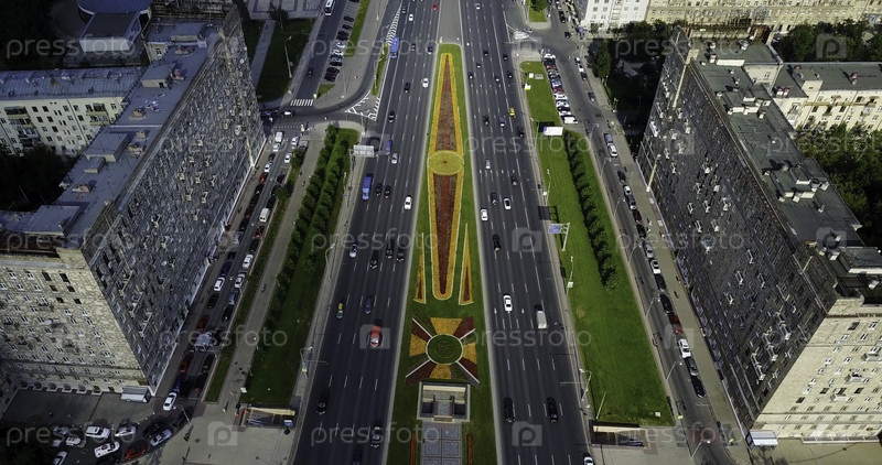 Вид на город сверху.Картина.Старые здания Москвы и Белый дом