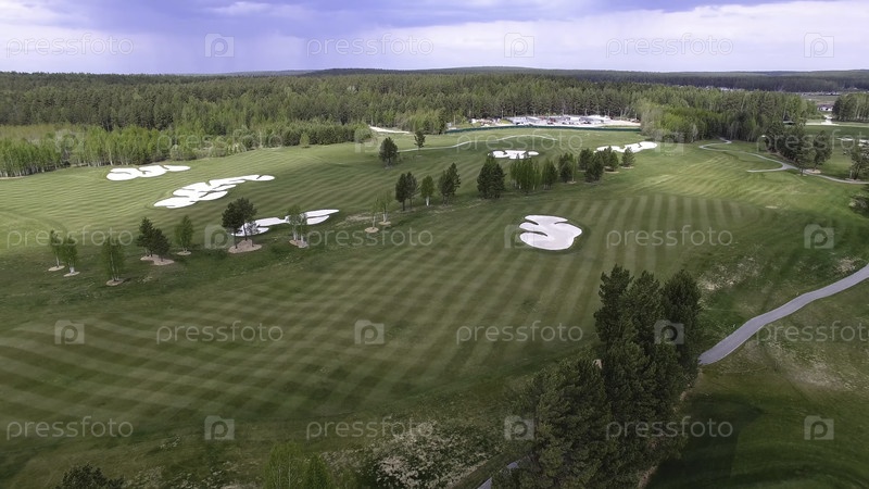 Вид сверху - зеленое поле для гольфа на открытом поле из зелёной травы