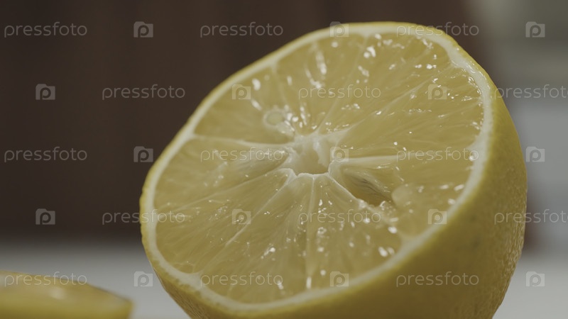 нарезанный сочный лимон. давай. половина свежего лимона на кухне. полимон, чтобы добавить кислоту в блюдо. ингредиент в виде свежего кислого лимона