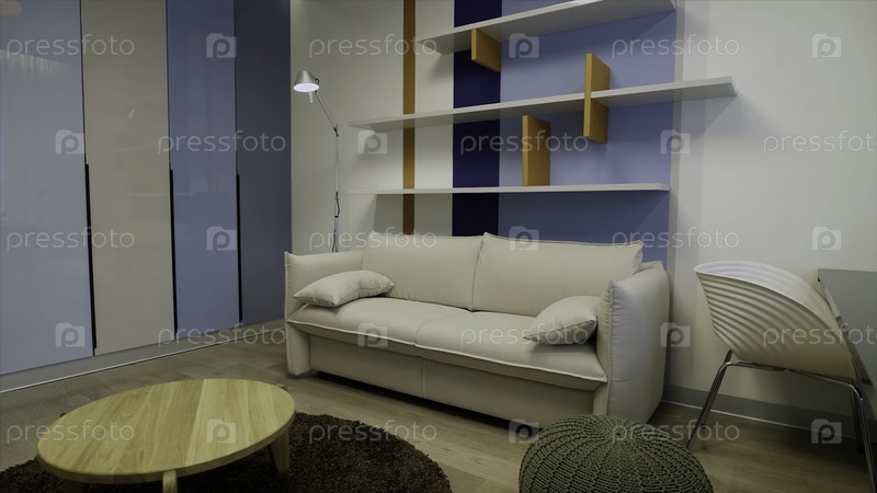 Цветная новая пустая внутренняя комната с мебелью. видео. пример лаконичного дизайна небольшой комнаты, концепция эргономики