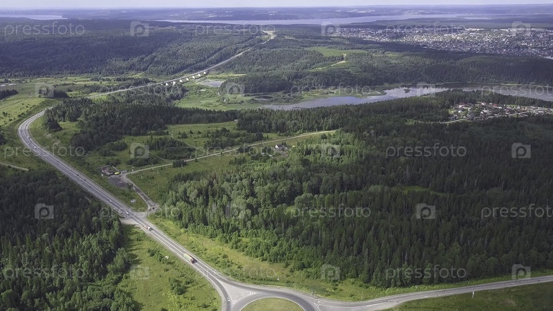 Пробки вдоль круговой сельской дороги в лесистой местности