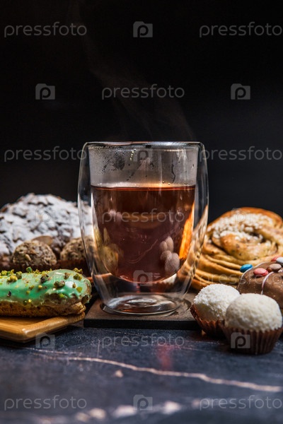 Наслаждайтесь вкусными печеньками и теплым горячим напитком на темном фоне для уютных моментов