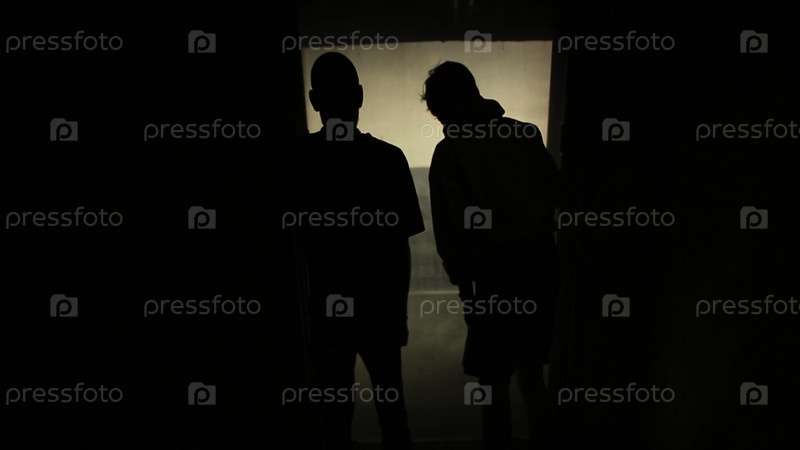 Силуэт двух других мужчин, смотрящих в окно. Кадры. Два друга перед окном, понятие дружбы