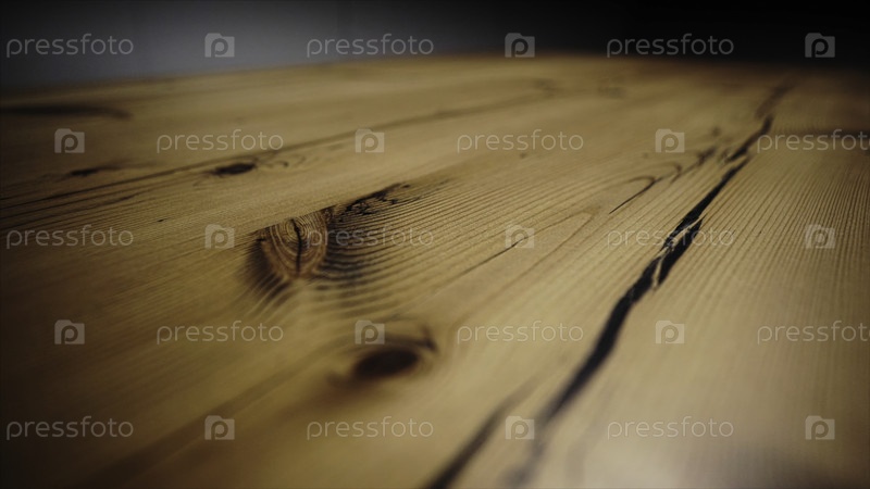 Закройте отполированный деревянный стол и движущийся световой луч на его поверхности. резервные кадры. натуральная текстура древесины под источником света