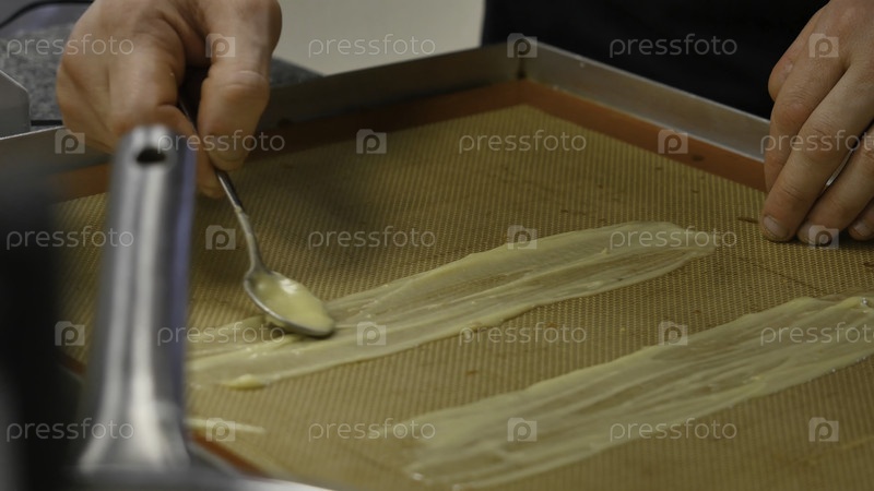 Мужчина смазывает торт сливочной смесью