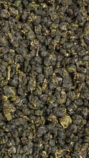 Близкий взгляд на темные, сушеные листья зеленого чая, которые идеально подготовлены и готовы к инфузиям для наслаждения