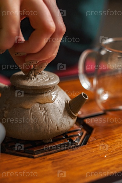 Осторожная рука кладет крышку на нежный чайник, улучшая успокаивающий опыт чаепития