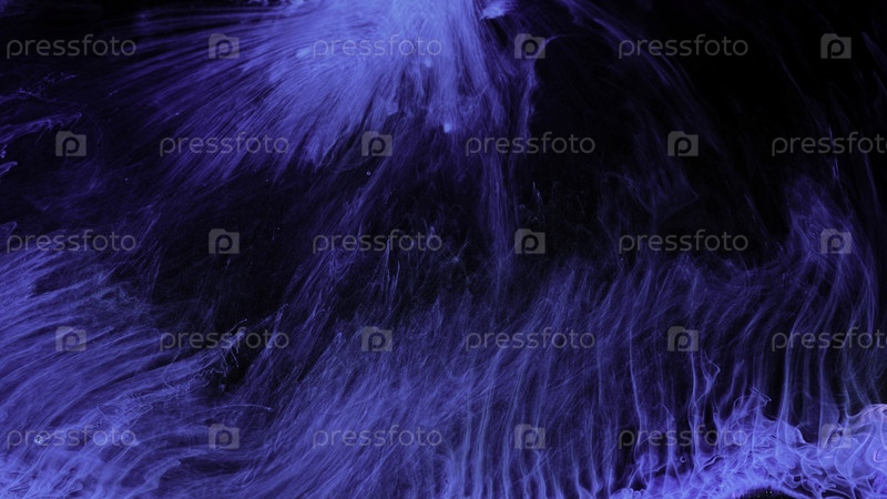 Вибрирующая краска в воде. резервные кадры. Нежные туманные узоры цветного чернил в воде на чёрном фоне. Красивая краска растворяется в воде