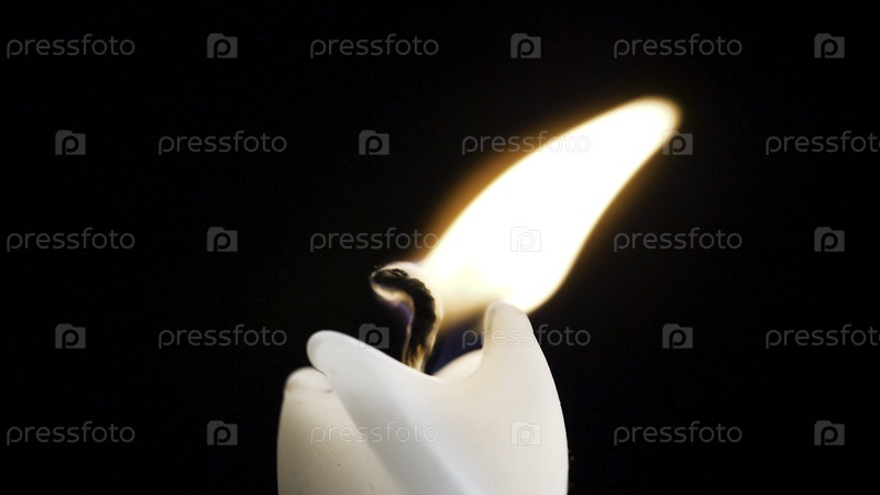 Andle Lights Macro: Близкий план горящей свечи, изолированной на черном фоне одним пламенем ночью макро ярким внутри
