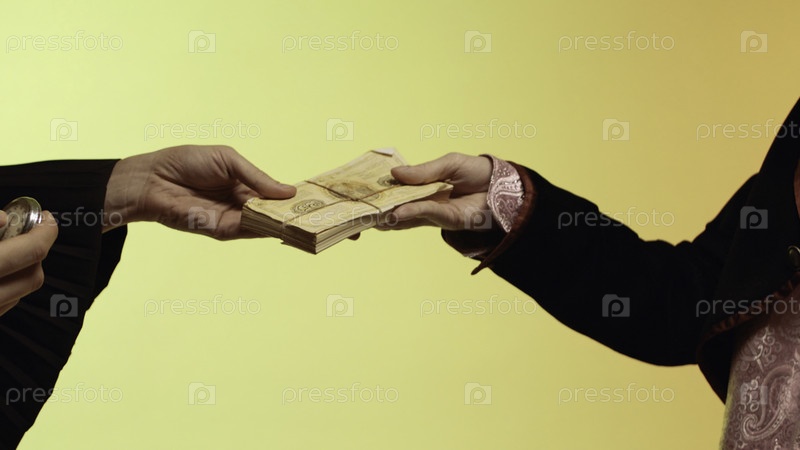 Женщина платит наличными в долларах.Сток.Традиционная покупка товаров за наличные из рук в руки