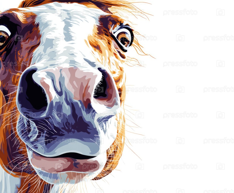 Красочная иллюстрация лица лошади с выразительными глазами и детальной текстурой меха